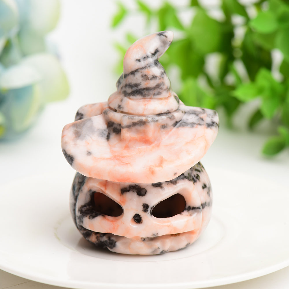 Our mixed crystal pumpkin lamp combines the unique energies of jade, sunstone, lavikite, sodalite, labradorite, and pink zebra. Each crystal brings calming, healing, and protective vibrations that enhance your Halloween ambiance with spiritual depth, promoting balance and positive energy flow in your space.