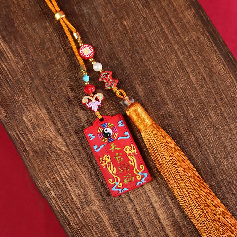 This beautiful car hanging combines cinnabar with the powerful symbols of Bagua, Yin Yang, and Fu character. It promotes balance, concentration, protection, and good fortune, creating a harmonious and spiritually uplifting atmosphere for your vehicle and daily travels.