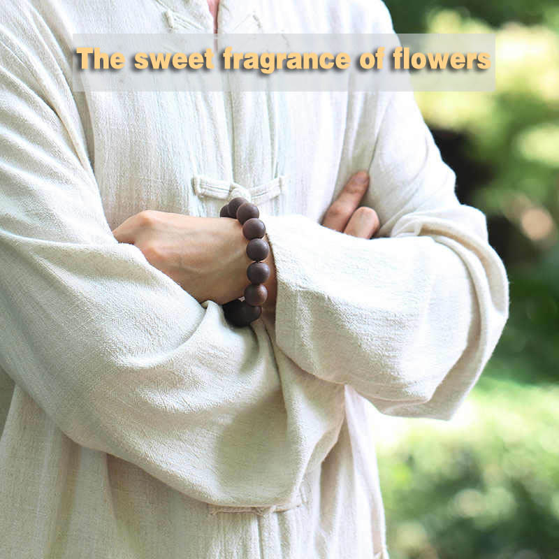 The bracelet showcases authentic Qinan agarwood from Cambodia, prized for its rich, sweet floral fragrance that intensifies with body heat. Each bead contains natural oils that release their aromatic energy during wear, creating a personal sanctuary of calm.