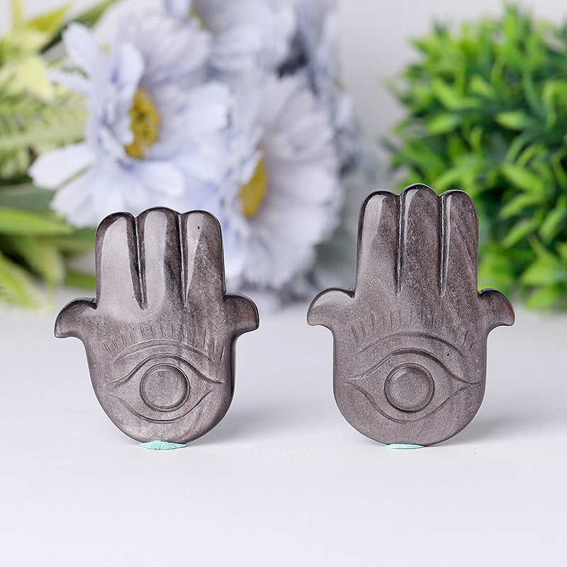 This obsidian hand figurine with its evil eye carvings is believed to provide strong spiritual protection, dispelling negative energy and promoting emotional balance and grounding.