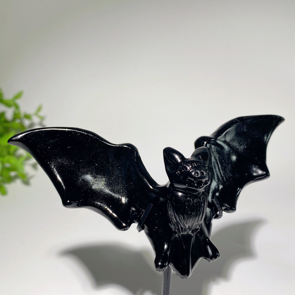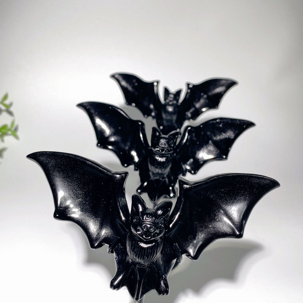 This black obsidian and yooperlite bat carving serves as a powerful crystal animal figurine that helps ward off negative energies, enhances intuition, and supports transformation and protection, perfect for your healing rituals.