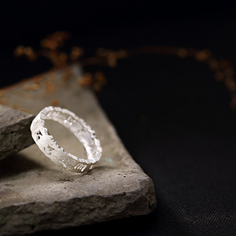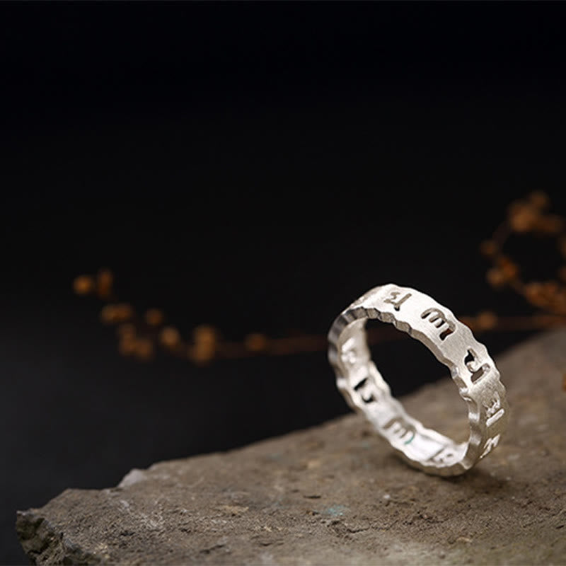 Handmade from genuine 925 sterling silver, this ring features the six-syllable Sanskrit mantra delicately inscribed along its surface. Each character represents a specific aspect of enlightened consciousness, making this piece more than jewelry—it's a spiritual protection ring that accompanies you throughout your daily journey.