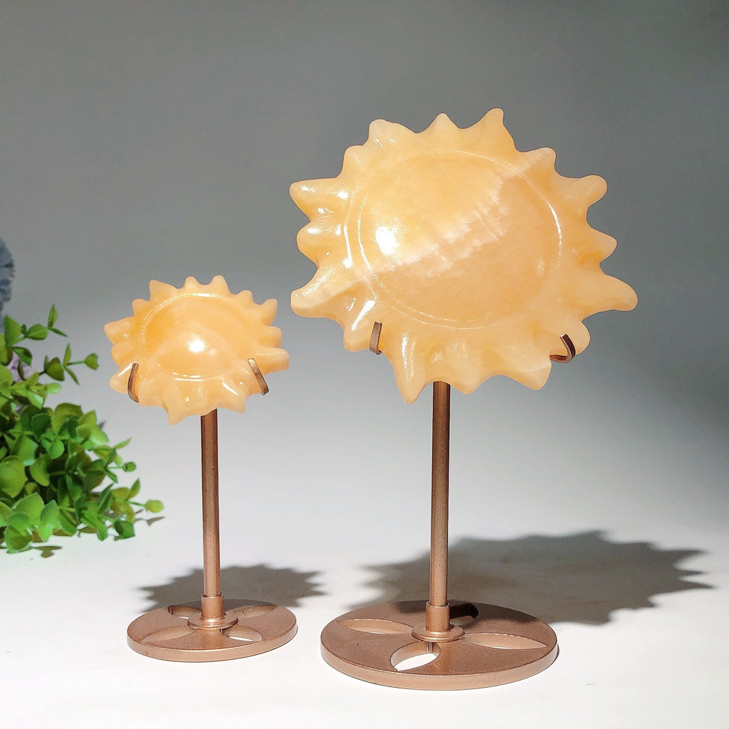 To keep your Orange Calcite sun crystal vibrant and energetically clear, gently clean it with a soft cloth and avoid prolonged exposure to water or direct sunlight. Regular energetic cleansing helps maintain its healing efficacy.