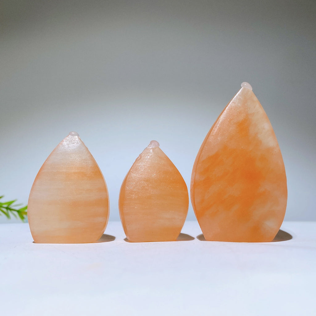 The Orange Selenite free form crystals range approximately from 1.5 to 3.0 inches (3.8 to 7.6 cm) long, perfect for display or meditation.