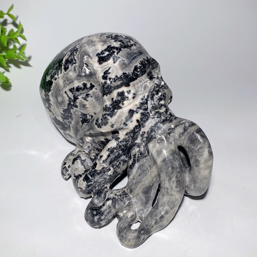 The Picasso Stone is known for its grounding and balancing energies, helping to clear negative thoughts and promote a calm, centered state. This octopus skull carving embodies those qualities, making it a powerful piece for meditation and healing rituals.