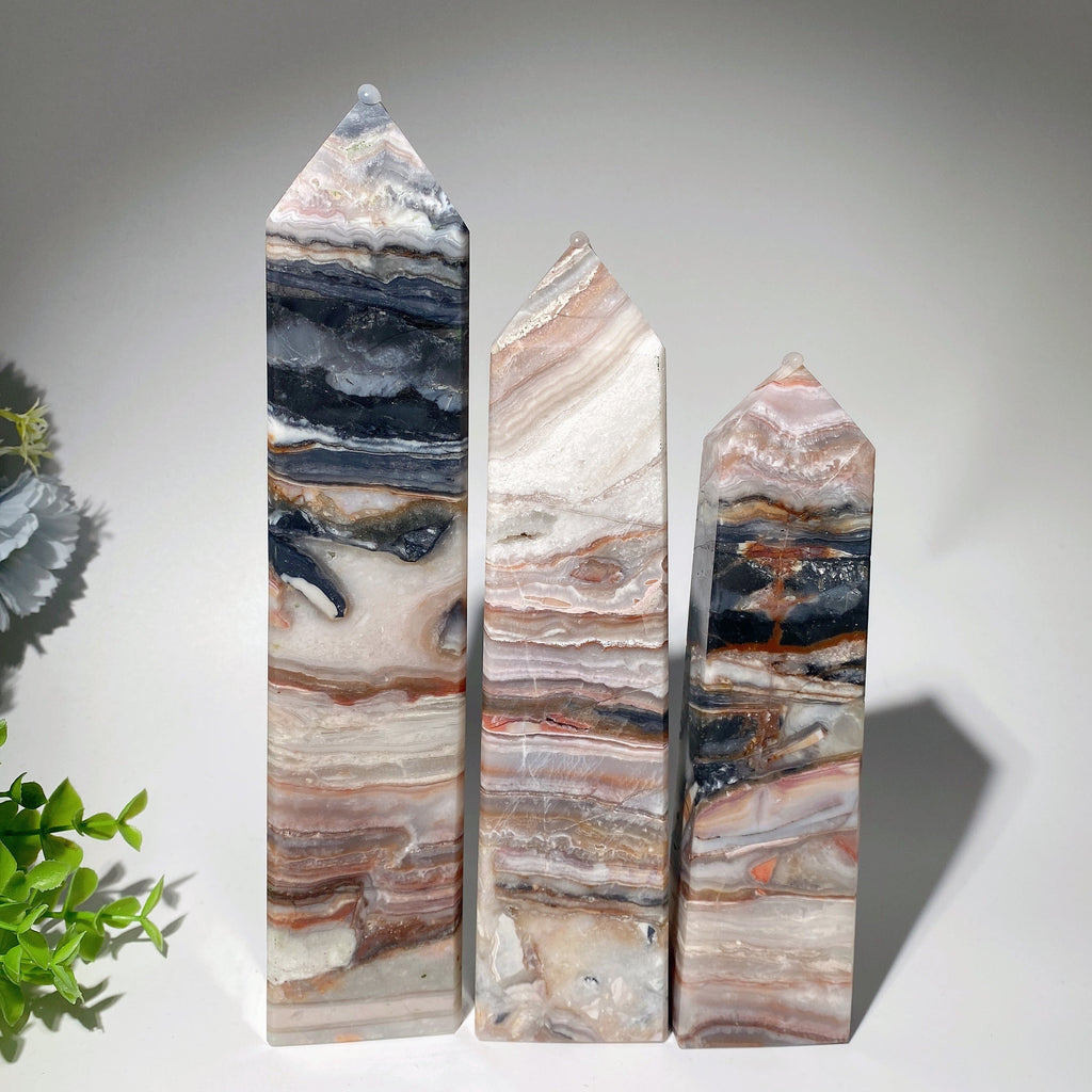 Each tower is uniquely patterned by nature, ensuring you receive a one-of-a-kind piece. The subtle variations in banding, color intensity, and exact patterning make these towers truly individual works of art, just as nature intended.
