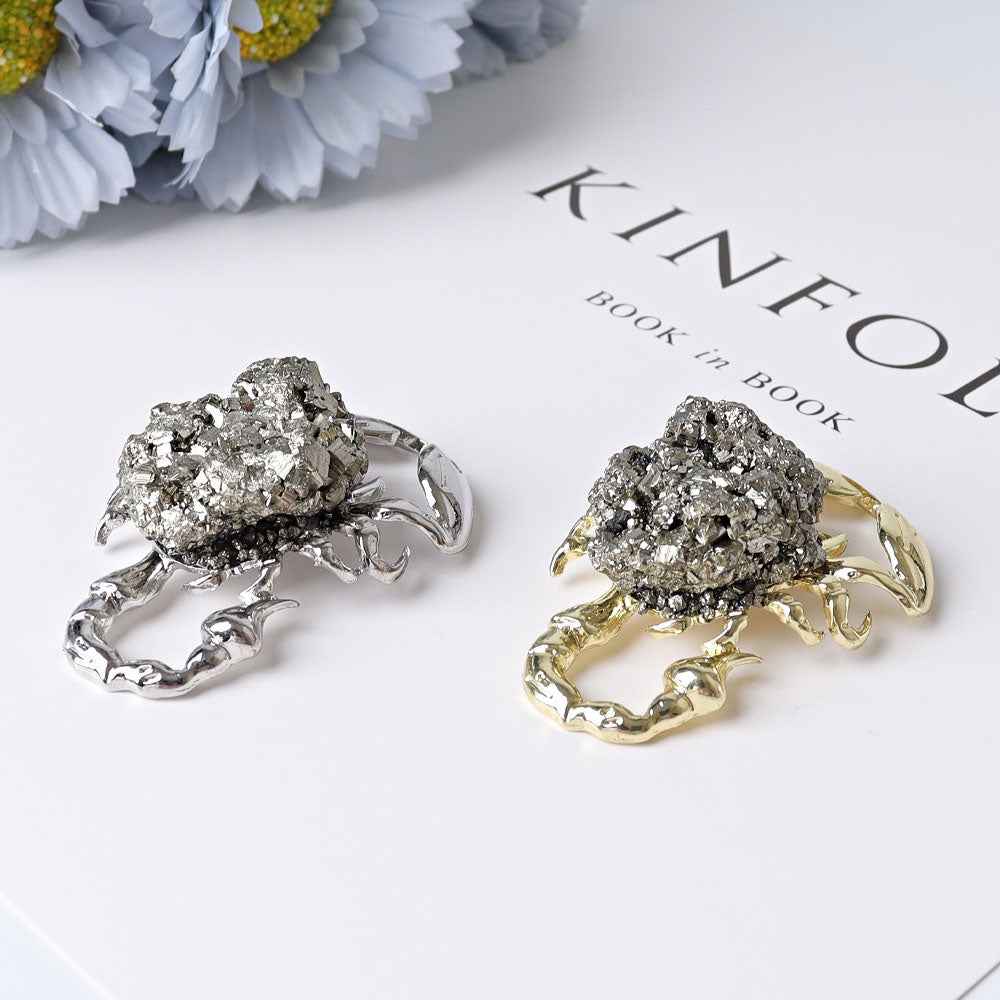 Yes, each piece is a natural pyrite specimen with unique free form shapes. The scorpion design is a crafted artistic representation retaining natural crystal textures.
