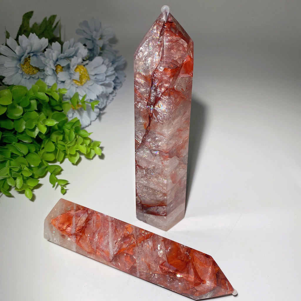 The Rainbow Flash Fire Quartz Tower is known for its vibrant energy that promotes spiritual healing, energy balancing, and cleansing of the environment. Its unique iridescence enhances manifestation and intention setting, making it a powerful tool for meditation and chakra healing.