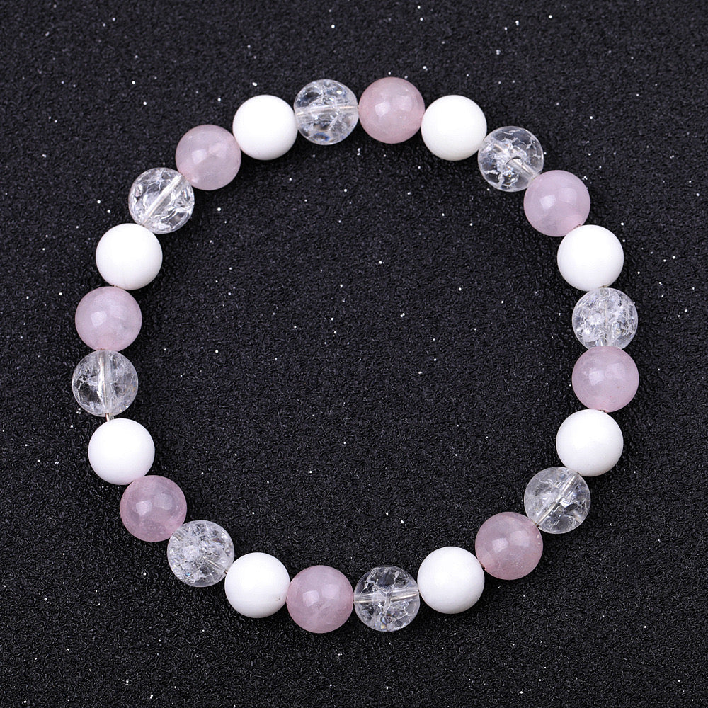 This bracelet combines the nurturing energy of Rose Quartz, the protective qualities of Jade, and the amplifying power of Clear Quartz. Together, they promote emotional healing, spiritual balance, and overall well-being.