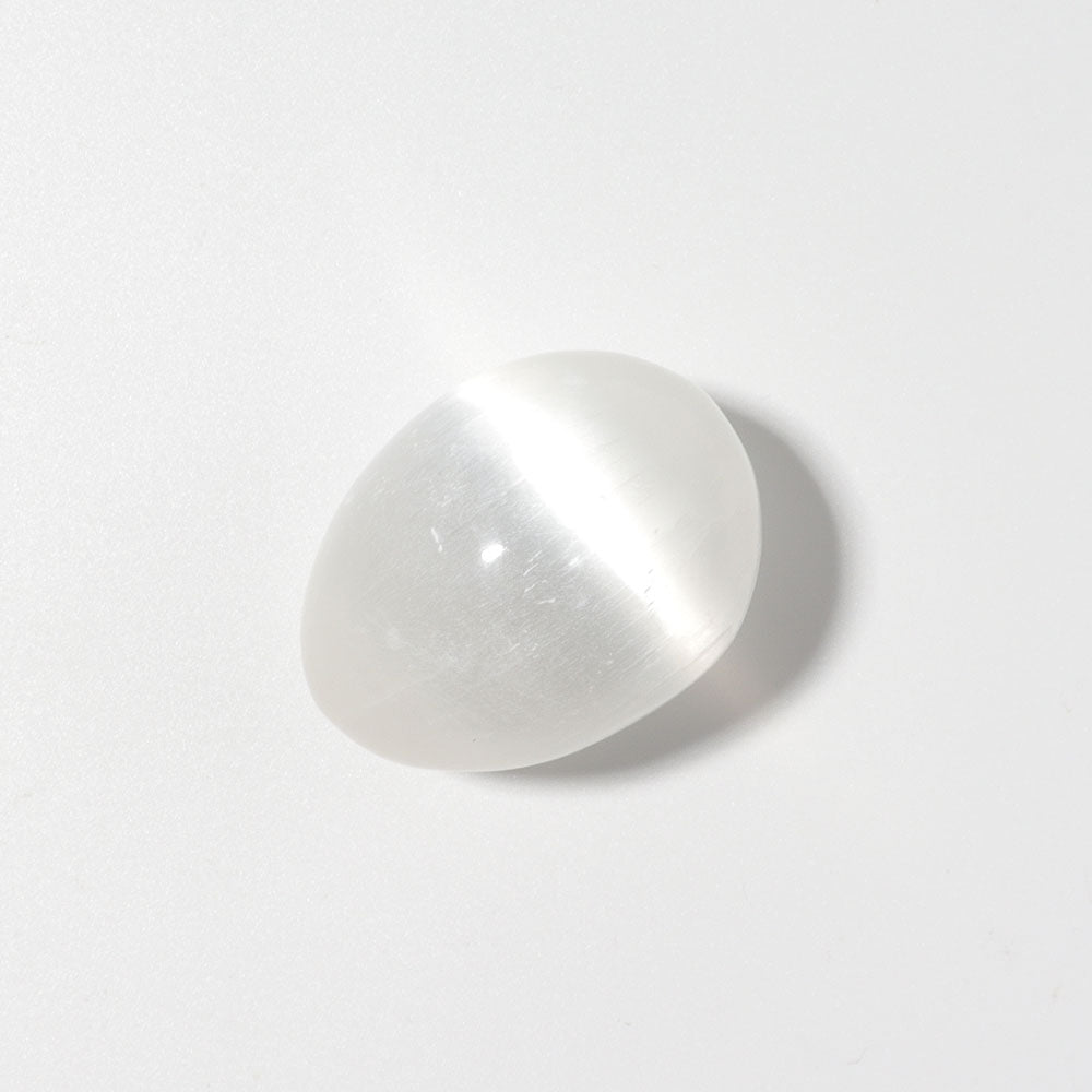 The 4 cm Selenite palm stone is known for opening the crown chakra and calming the mind, making it perfect for meditation and spiritual healing practices.