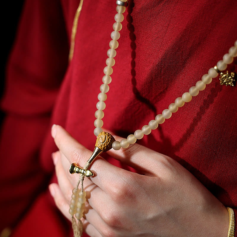 Crafted in the tradition of a 108-bead mala, this bracelet doubles as a meditation tool. The 108 beads hold special significance in Eastern spiritual practices, representing the journey toward enlightenment. As you touch each bead during meditation or throughout your day, you can cultivate mindfulness and connection to your intentions.