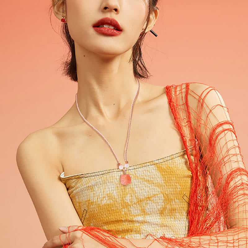 The Dancing Lion pendant symbolizes protection, courage, and auspiciousness. Combined with Silver Sheen Obsidian and Red Agate, it offers soothing communication, confidence, and emotional balance.