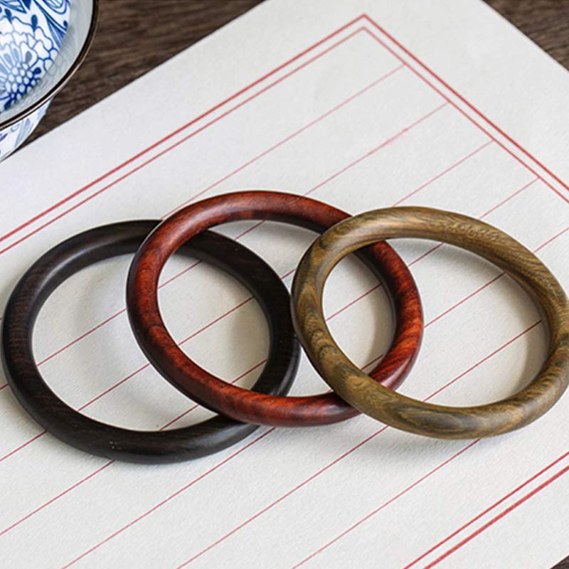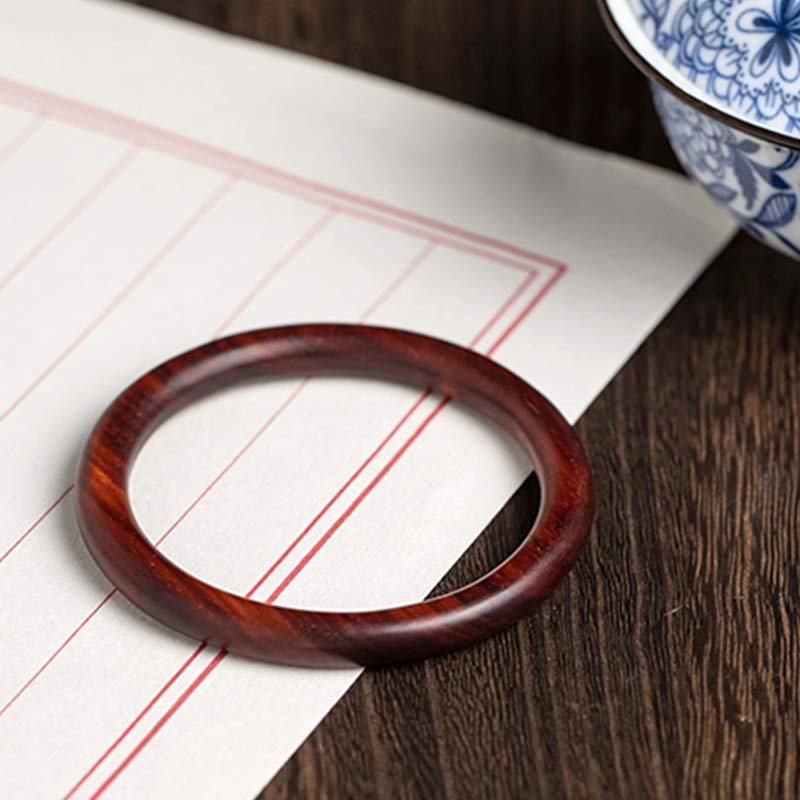 Available in multiple sizes starting at 54mm, this natural wood bangle creates a striking presence on any wrist. The rich reddish-brown hue and distinctive grain pattern showcase the natural beauty of this revered wood species, traditionally used in spiritual practices for centuries.