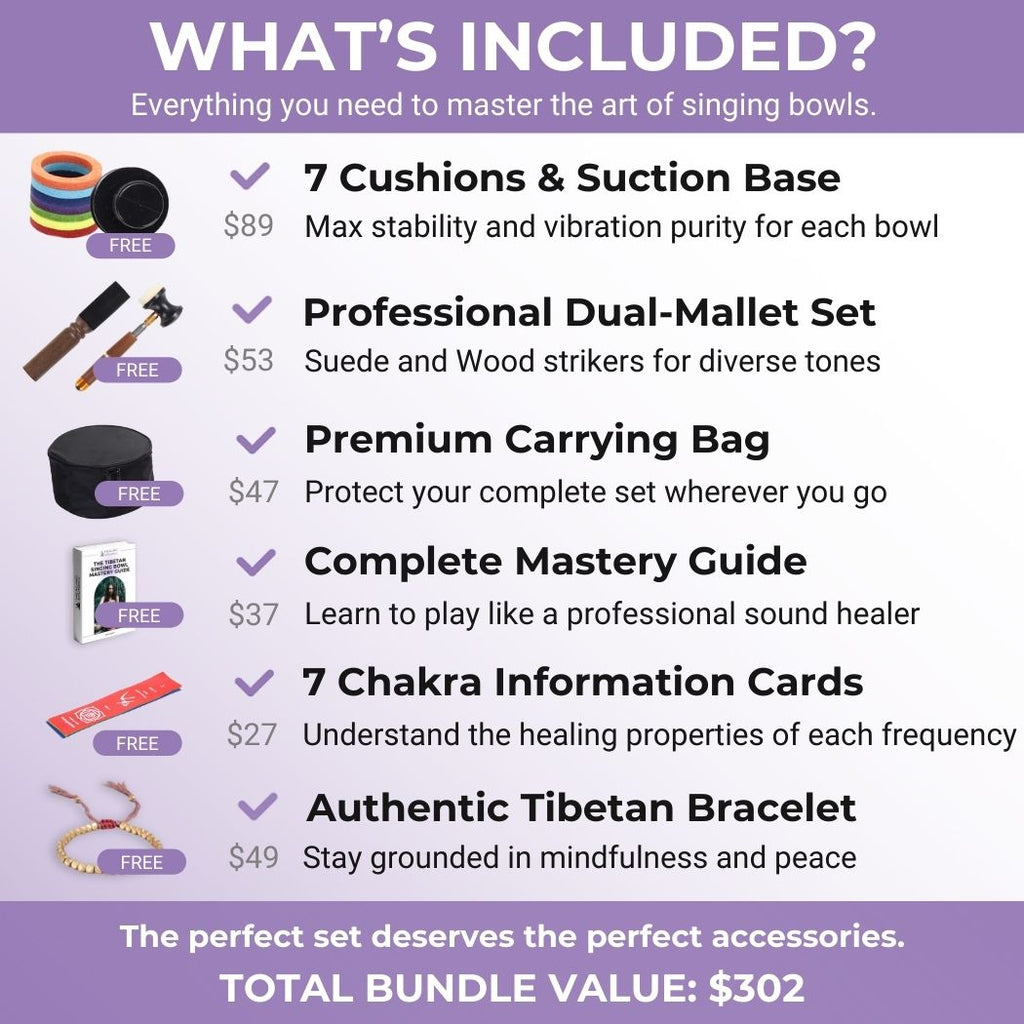 • Sound: Complex, layered overtones with 20+ second sustain (cheap bowls sound "flat" or "tinny" with rapid decay)