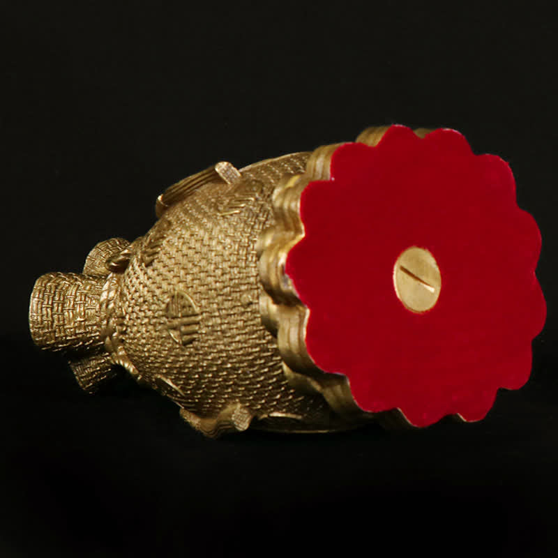 - Material: Solid copper with gold plating and inlaid coral and turquoise
