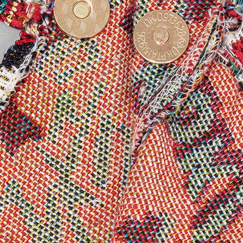 - Material: Natural cotton fabric with polyester, leather, and metal accents