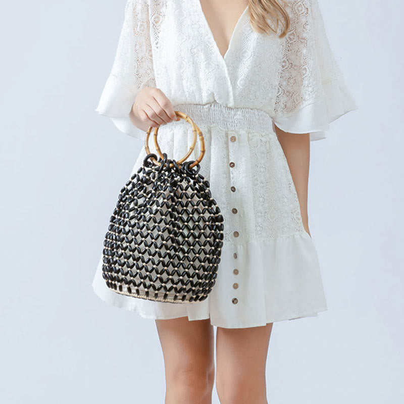 Embrace the elegance of natural materials with our Hand-woven Wooden Beads Shoulder Bag with Bamboo Handle. This exquisite piece of spiritual jewelry for your everyday life combines artisanal craftsmanship with organic elements, creating a stylish accessory that resonates with mindful living. The intricate wooden bead construction offers both visual appeal and a tactile experience that connects you to nature's essence.