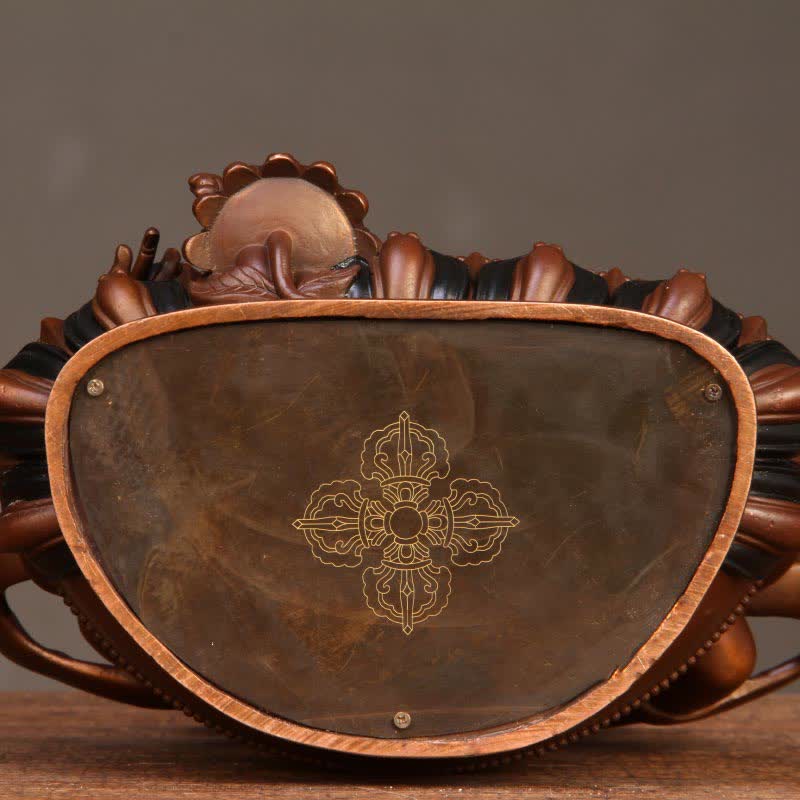 Yes, the statue is carved from authentic copper, lending it both durability and a warm, inviting energy. Copper is a metal known for its spiritual properties, believed to increase energy flow and balance.